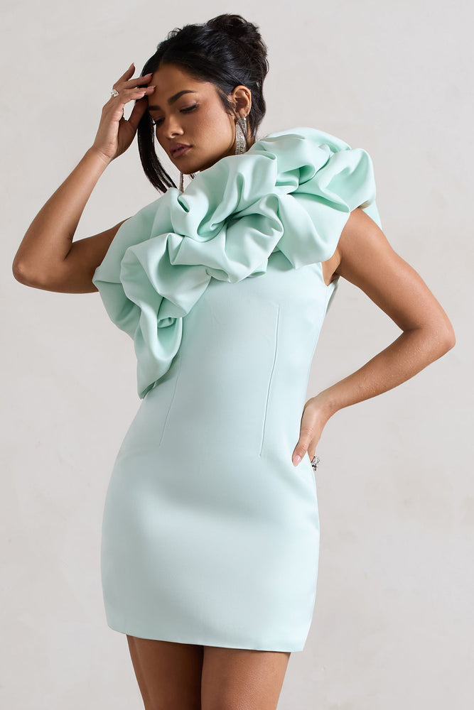 At The Opera | Mini-robe en satin vert menthe à encolure asymétrique