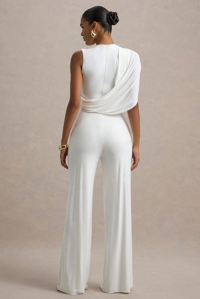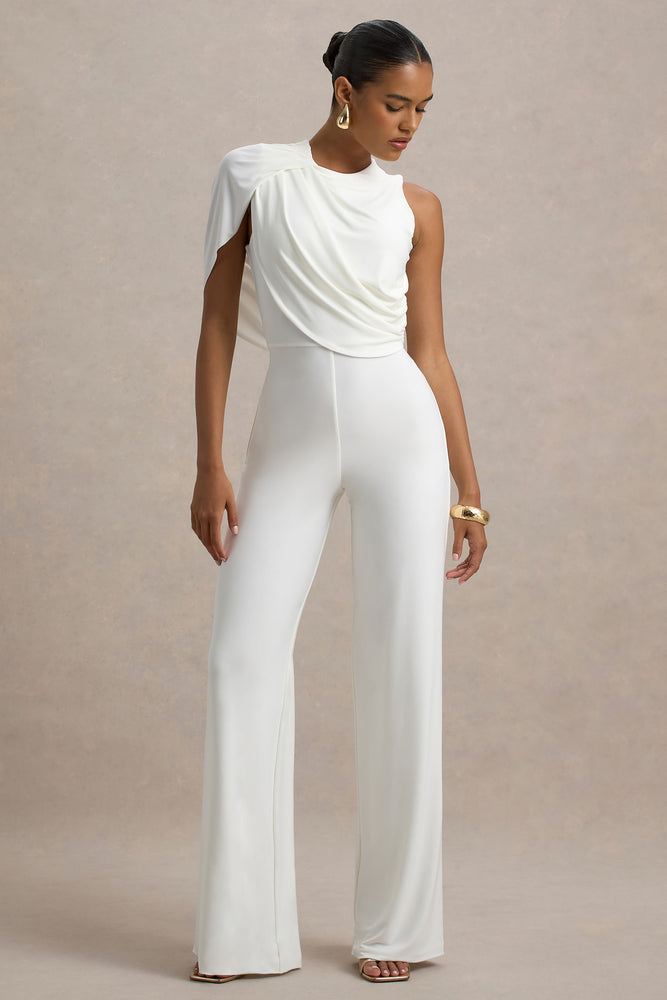 Opulence – Combinaison blanche avec manches cape et détails drapés